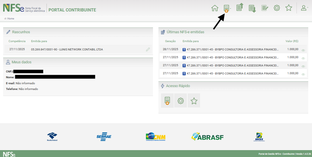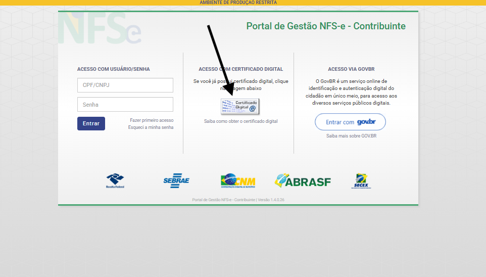 1 Acesso ao emissor de nota fiscal será somente por certificado digital: https://www.nfse.gov.br/EmissorNacional