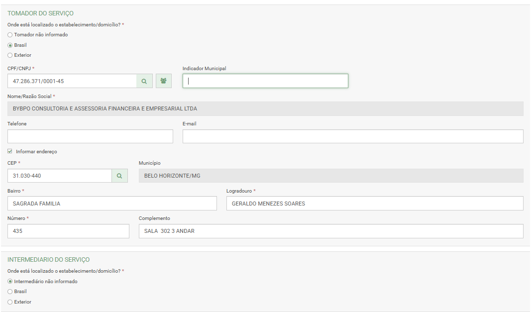 - Local de prestação: Coloque o municipio de sua empresa (excessões vide conosco)