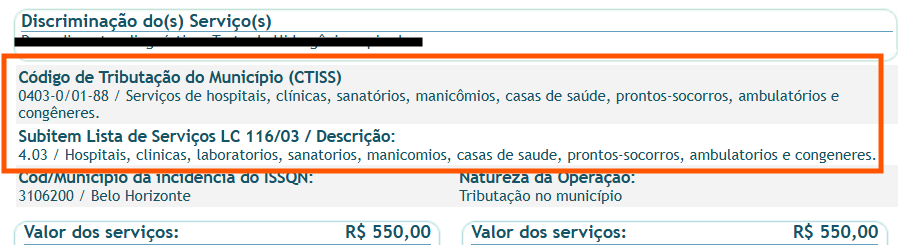 - Codigo de tributação Nacional e Municipal: Pesquisar inicialmente por palavras chaves pela atividade de sua empresa: Ex: arquitetura, advocacia, consultoria, etc. Se houver dúvidas busque as palavras e códigos na nota antiga da prefeitura conforme abaixo.