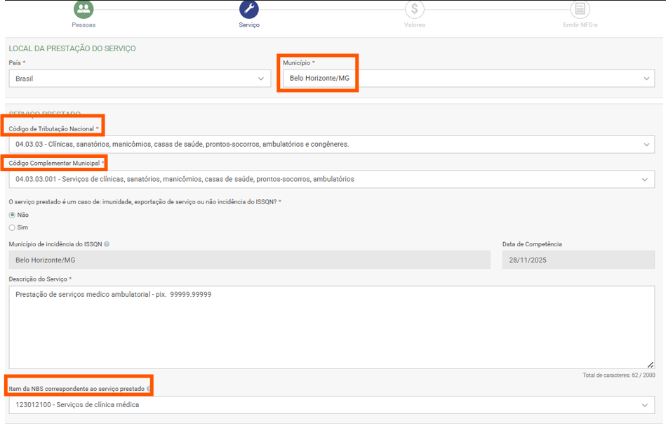 - Item da NBS: Pesquise pelas mesmas palavras chaves, caso não encontre NBS adequado deixar em branco.